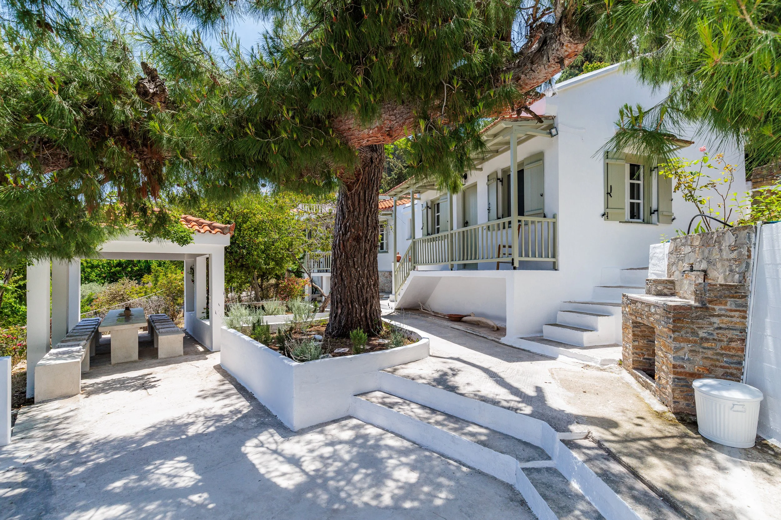 Discover a serene retreat on Skopelos Island, where our property is cradled by the tranquility of olive and pine trees. While the beach is just a stone's throw away, the house itself provides an exclusive and peaceful vacation experience. Nestled gracefully on the hillside, you'll find yourself surrounded by the soothing embrace of olive trees, creating a secluded haven for relaxation and rejuvenation. As you explore the expansive plot, diverse spots invite you to revel in panoramic sea views from different vantage points. Welcome to a unique getaway that seamlessly blends natural beauty with a tranquil atmosphere, offering a truly private escape on this enchanting island.